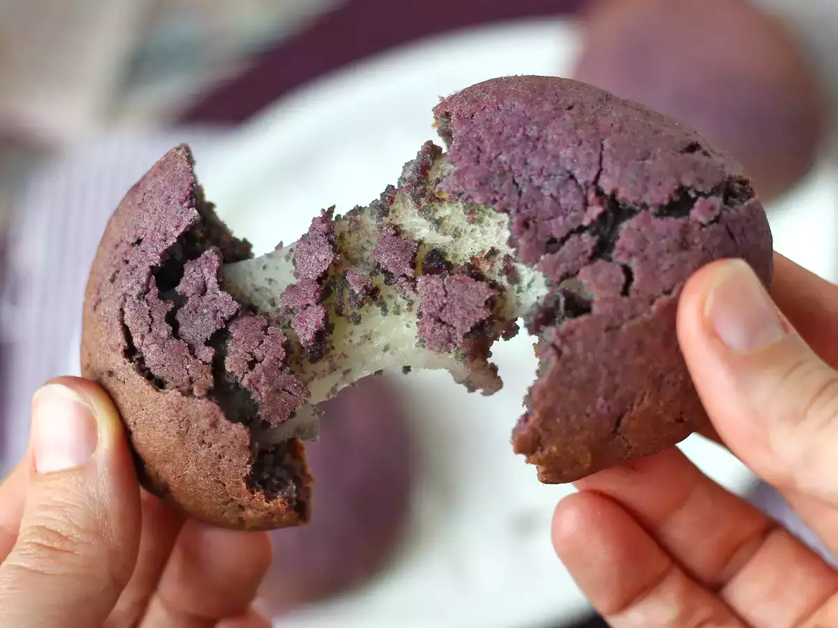 Ini kue mochi dengan ube ini merupakan perpaduan sempurna dari dua tekstur yang kami sukai: kue yang lembut di bagian luar dan bagian dalam yang elastis dan meleleh. Saat dimasak, kue ini tetap lembut, sementara bagian tengahnya menjadi sedikit kenyal, hampir membuat ketagihan. Ube, dengan warna ungu yang cantik dan rasa manis sedikit vanila, menambahkan sentuhan orisinil yang membuat perubahan dari kue klasik. Dan jika Anda menambahkan kepingan cokelat putih, kontrasnya menjadi semakin lezat;)