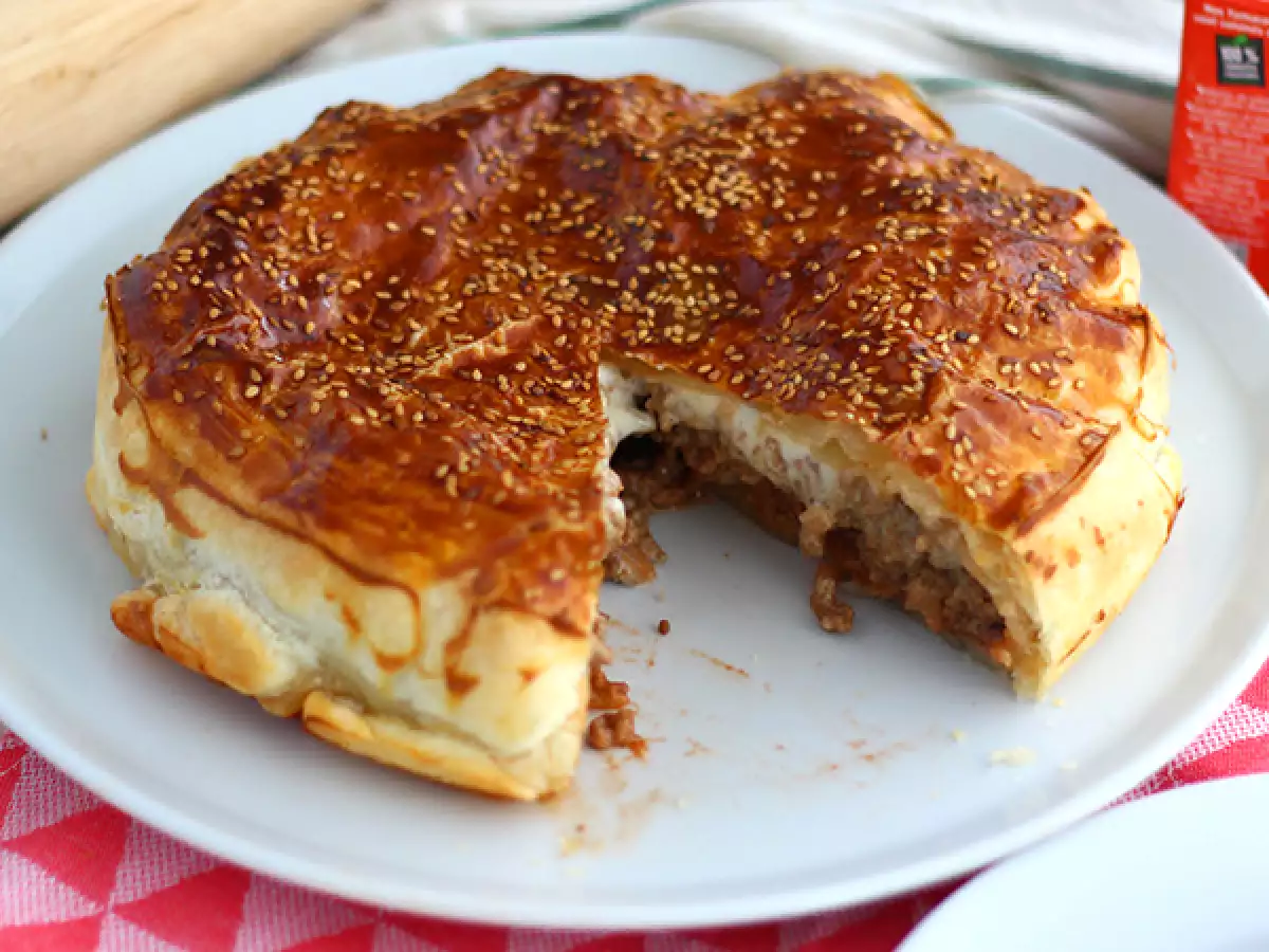 Apakah Anda suka burger? Apakah Anda suka pai? Maka Anda akan menyukai perpaduan keduanya! Ini adalah resep yang sempurna untuk sebuah suguhan yang berbeda dari sajian biasanya. Pai ini, yang akan menarik bagi orang tua dan muda, dapat dimakan sendiri atau disajikan dengan salad. Sedikit kesegaran tidak akan salah di sini :-)